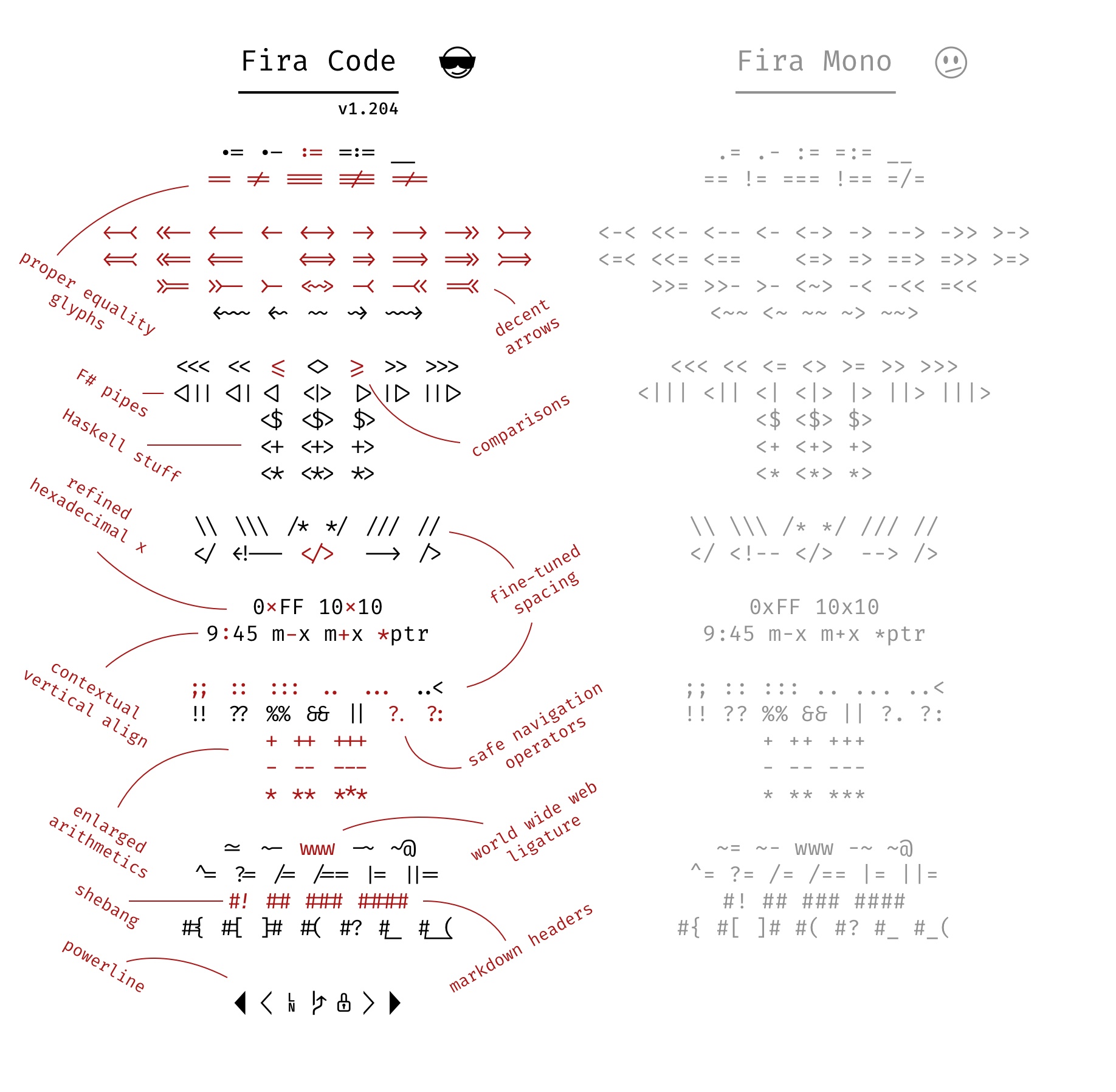 Fira Code 还有一些特性,详见后文。