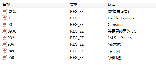 再进入[HKEY_LOCAL_MACHINE\SOFTWARE\Microsoft\Windows NT\CurrentVersion\Console\TrueTypeFont]中。